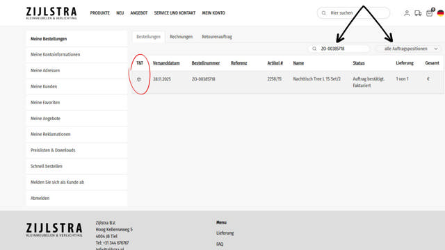 - In der Spalte T&T findest du ein 📦-Symbol. Klicke darauf und du wirst zur Seite weitergeleitet, auf der du das Paket verfolgen kannst.