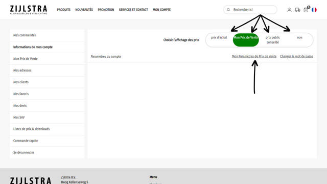 4. Cliquez ensuite sur Mon Paramètres de Prix de Vente.